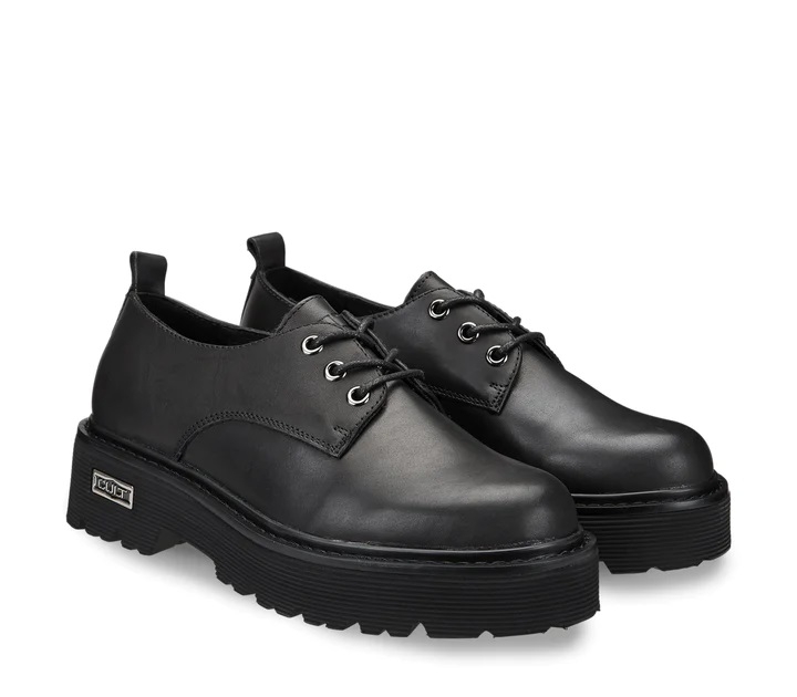 Intramontabili queste derby firmate Cult della famiglia Slash. In pelle nera, volumi aumentati con occhielli in metallo e chiusura con stringhe, questi derby conferiranno un tocco rock ad ogni vostro outfit.
