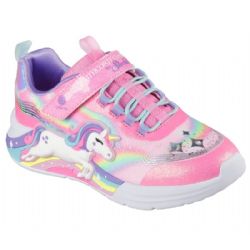- Tomaia in materiale tecnico glitterato con motivo laterale raffigurante un unicorno con arcobaleno