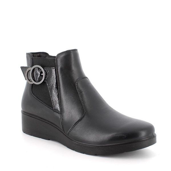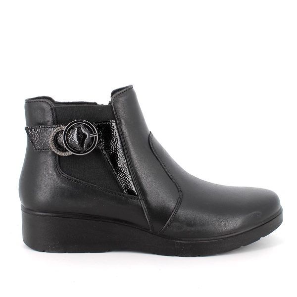 Questi stivaletti sanno come farsi notare, grazie alla fibbia ornamentale sulla fascia laterale ed inserto in vernice che aggiunge un tocco chic irresistibile. La facile calzata è garantita dall’elastico e zip laterale. Oltre allo stile, non manca la sostanza: comodi, femminili e grintosi, sono perfetti per affrontare la stagione con un mix vincente di glamour e praticità.