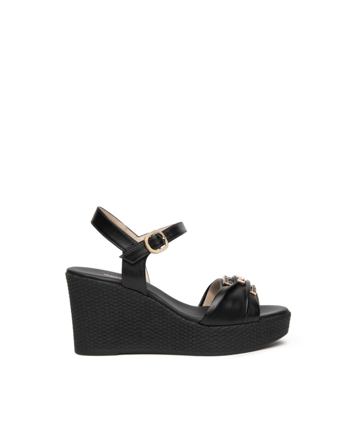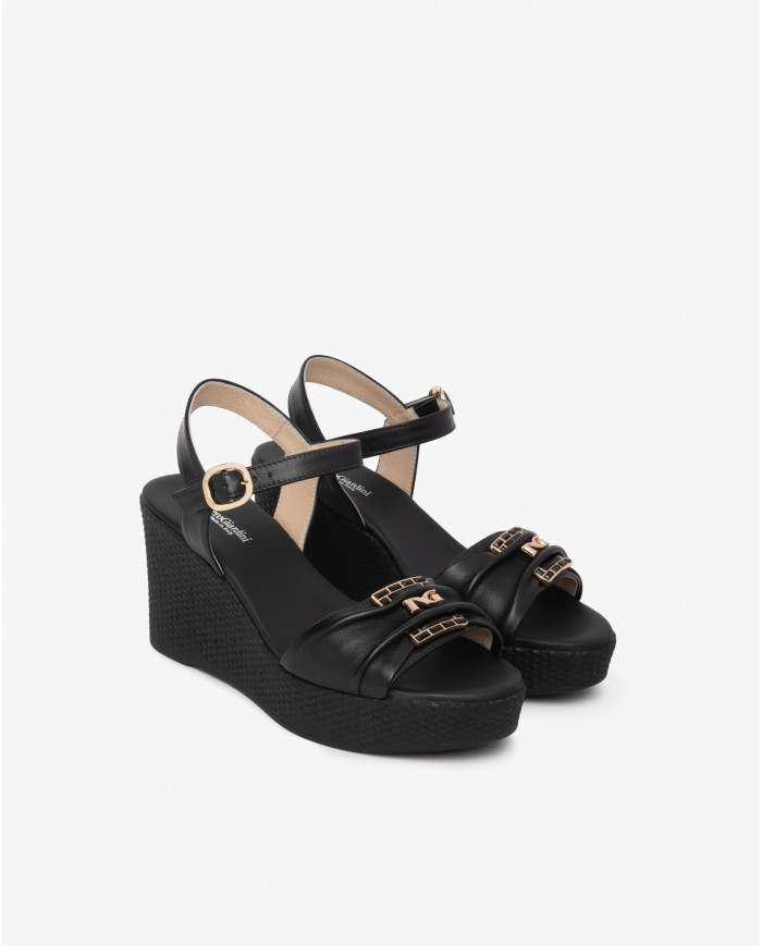 SANDALO CON ZEPPA NEROGIARDINI DONNA NAPPA PANDORA NERO PU.MONOD.GELA E615980D/100