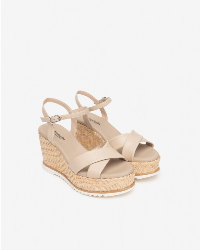 SANDALO CON ZEPPA NEROGIARDINI DONNA PELLE LINO TACCO 8,5CM E410630D/453