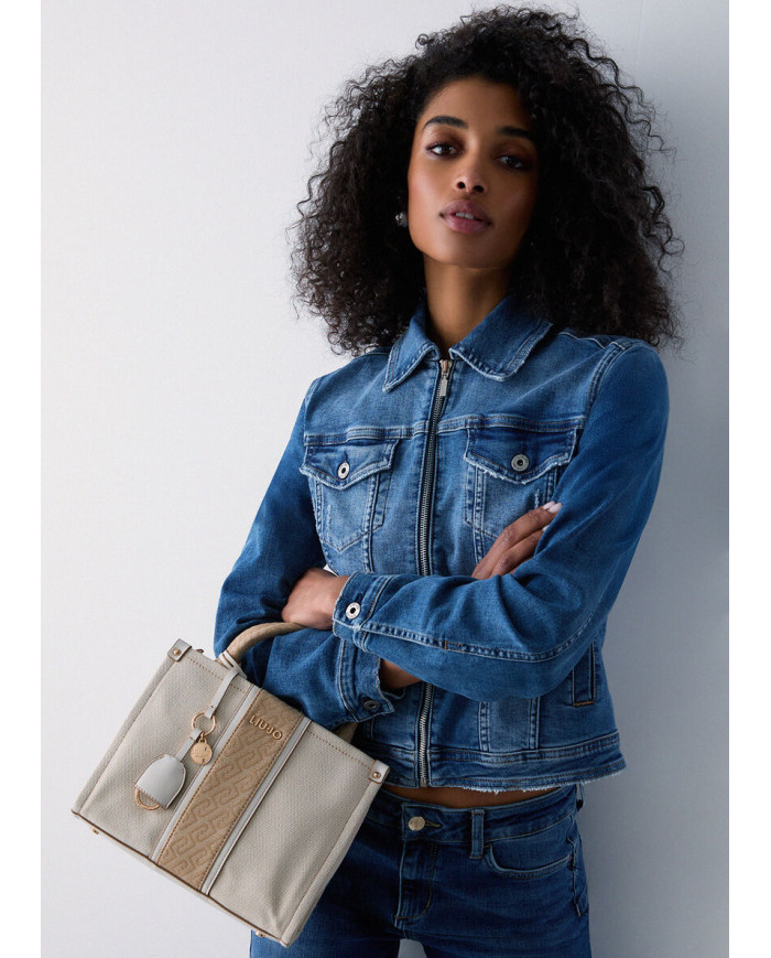 BORSA LIU JO PICCOLA KACQUARD SHOPPING NEUTRO/CREAM 25X11X21CM AA6192 T388A C3905