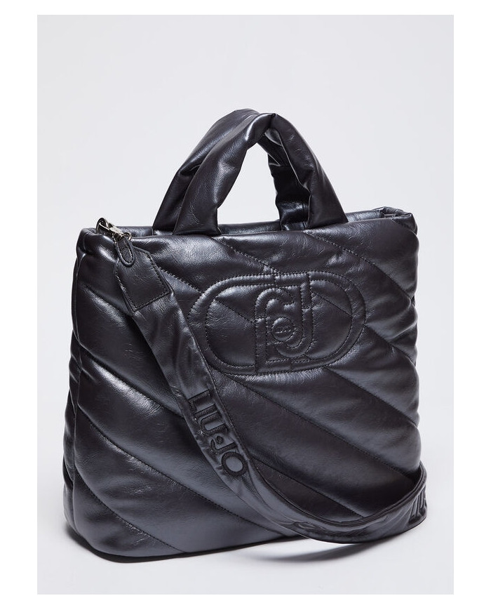 BORSA LIU JO DONNA SHOPPING BAG GLOSSY MATELASSE' ANTRACITE 36X14X44CM