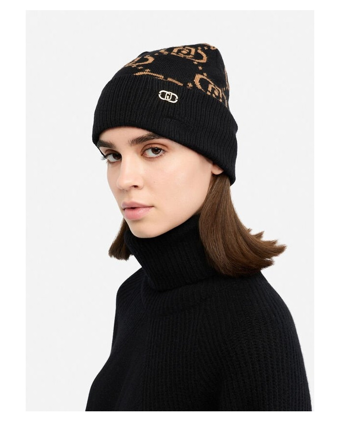 BERRETTO LIU JO DONNA BEANIE LOGO MONOGRAM NERO/CAMMELLO 2F5005 M0300 09N37