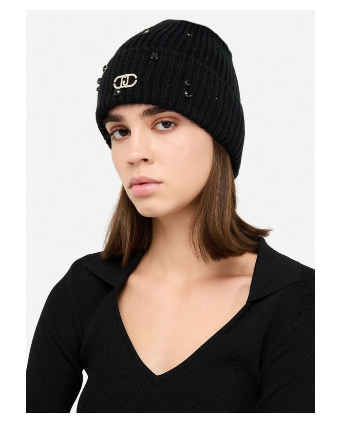 BERRETTO LIU JO DONNA BEANIE NERO LANA CON STRASS 2F5017 M0300 22222