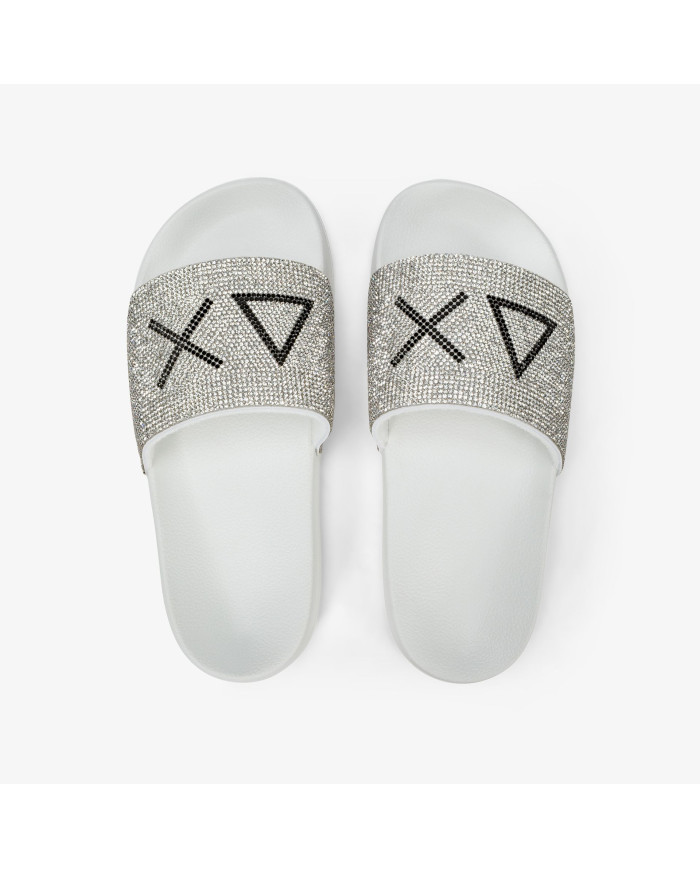 CIABATTE SUN68 DONNA SLIPPERS STRASS LOGO CON STRASS BIANCO