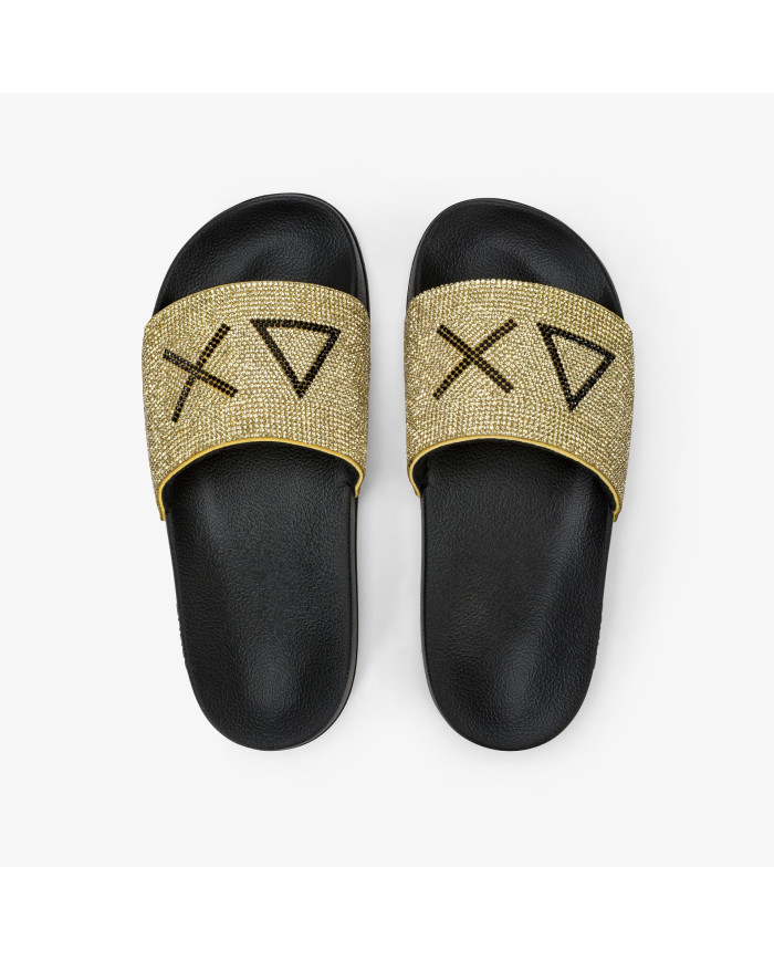 CIABATTE SUN68 DONNA SLIPPERS STRASS LOGO CON STRASS NERO/ORO X36211 1143