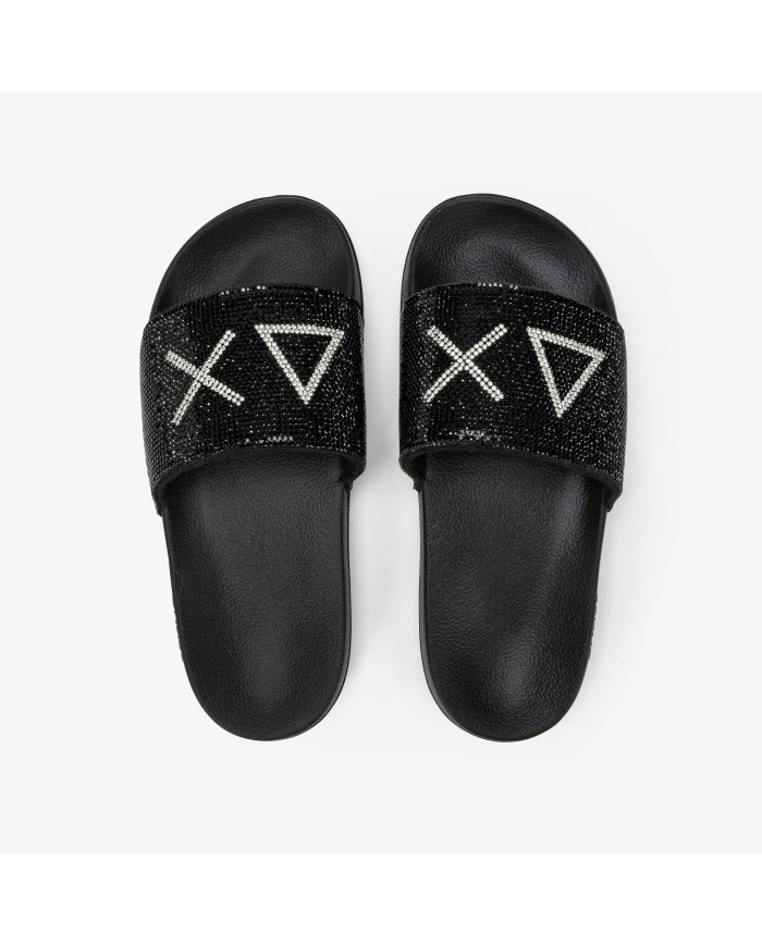 CIABATTE SUN68 DONNA SLIPPERS STRASS LOGO CON STRASS NERO X36211 11