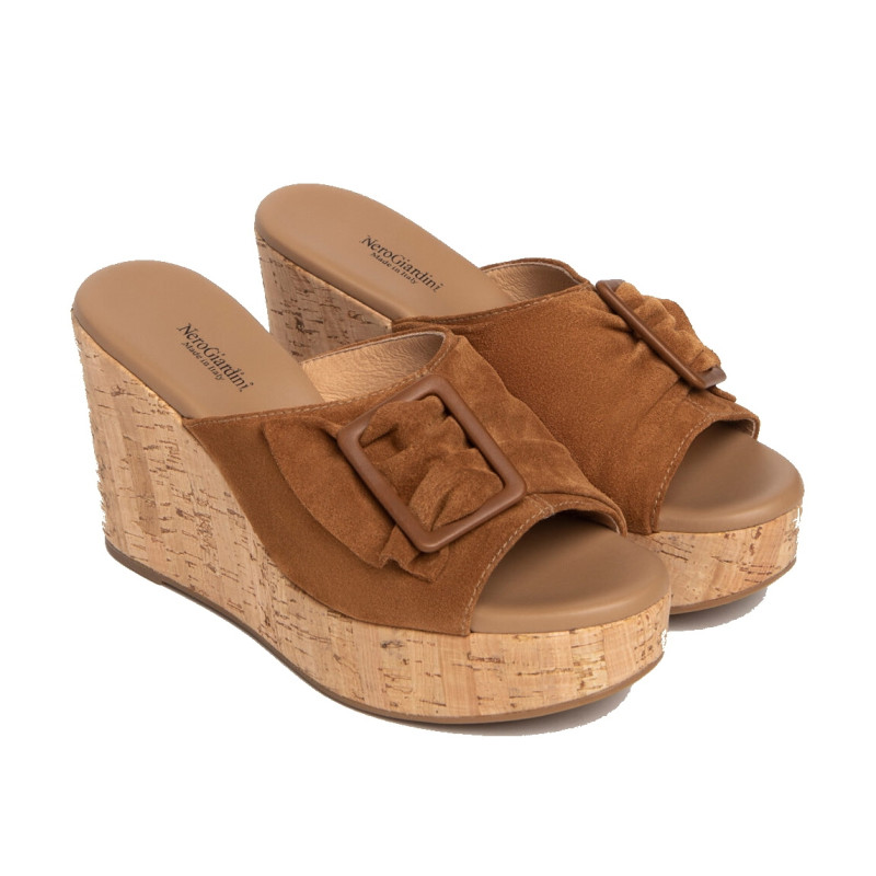 CIABATTE NEROGIARDINI DONNA VELOUR TABACCO PU.MUSAE307660D/326
