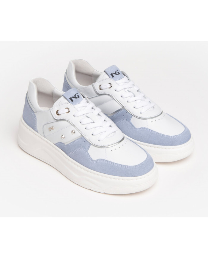 SNEAKERS NEROGIARDINI DONNA VELOUR FIORDALISO SKIPPER BIANCO OXIGEN ARGENTO E306563D/623