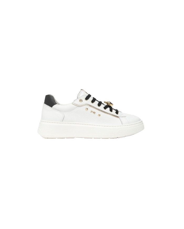 SNEAKERS NEROGIARDINI DONNA CILE BIANCO GUANTO NERO T.BRILL PLATINO TR GONZAGA I514171D/707