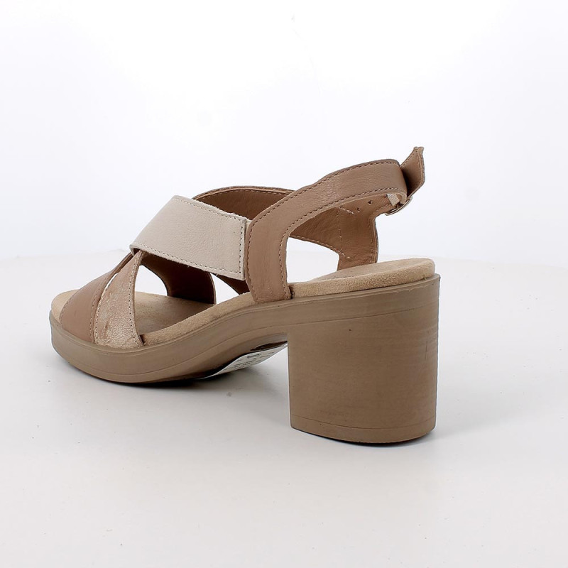 Questi sandali con tacco hanno una tomaia a fasce incrociate che abbraccia il piede in modo elegante e assolutamente confortevole. Si regolano velocemente tramite la fibbia alla caviglia ed hanno un tassello elastico invisibile all'interno, per adattarsi al meglio al tuo piede. La suola, con tacco largo e di media altezza, offre un appoggio stabile e la flessibilità tipica delle calzature Igi&co.