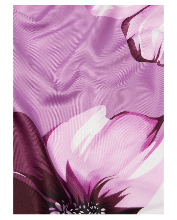 Questo foulard è l’accessorio glam che fa la differenza, con maxi fiori stampati su un fluido raso. Legalo ai manici delle tue borse preferite per aggiungi carattere e luminosità a ogni tuo look.