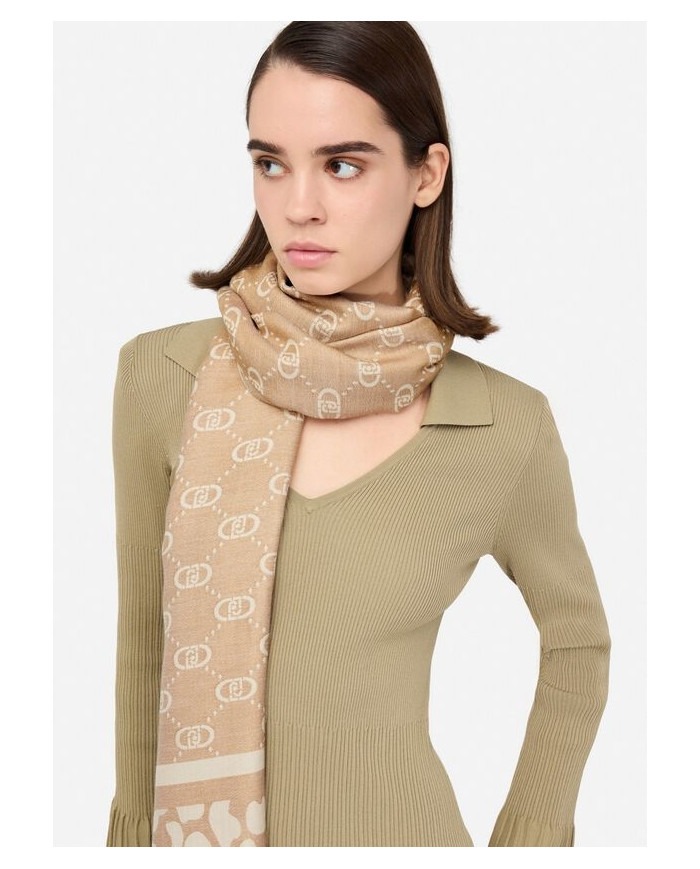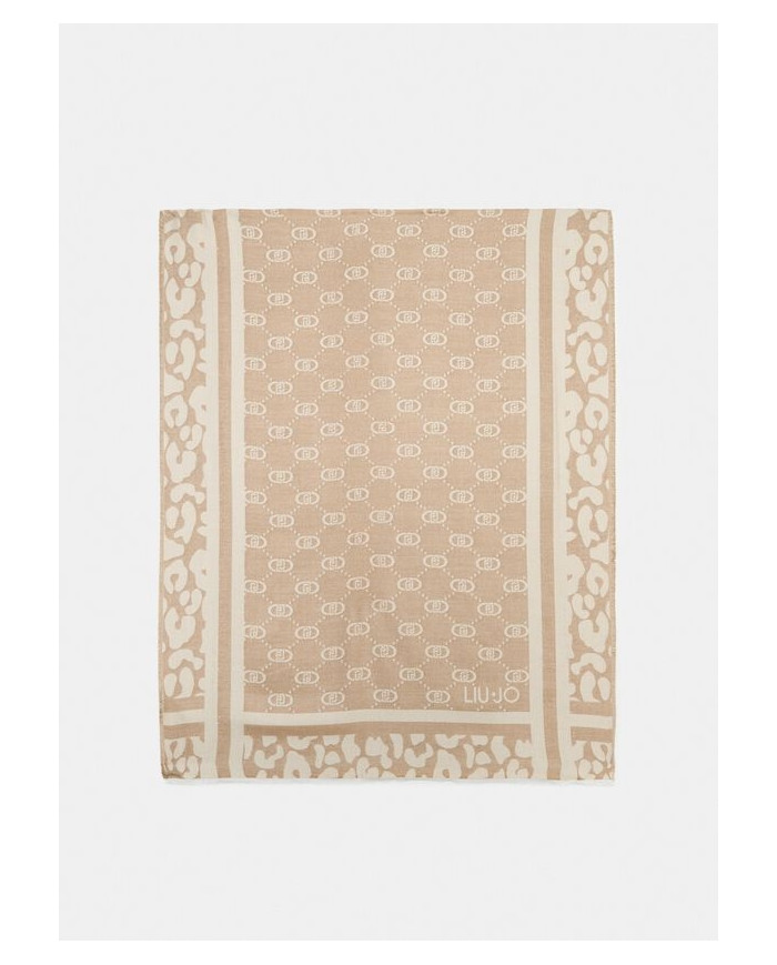 FOULARD LIU JO DONNA STOLA JACQUARD MONOGRAM ANIMAL OAT MILK 70X180 2F5040 T0300 30003