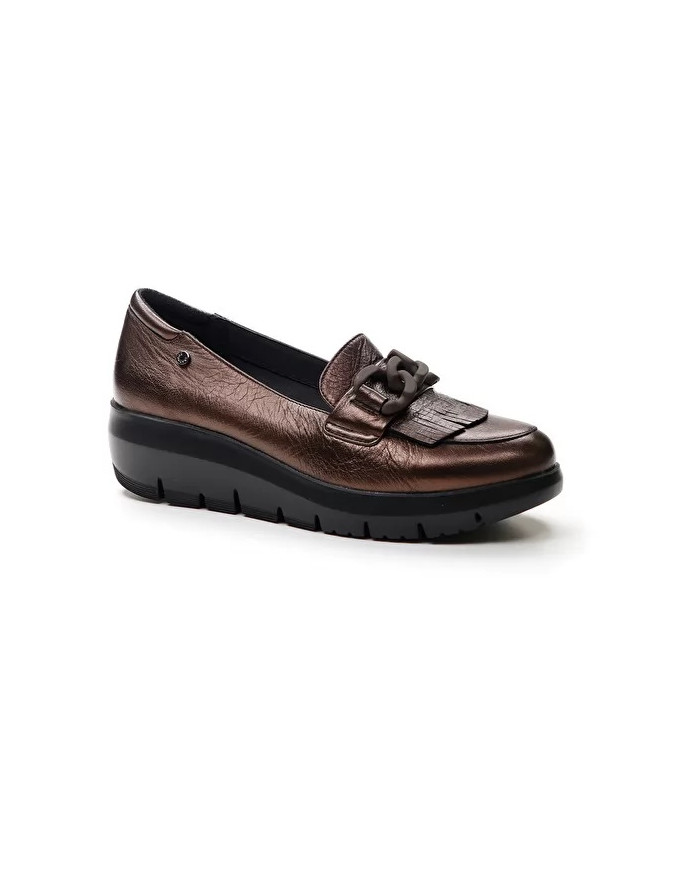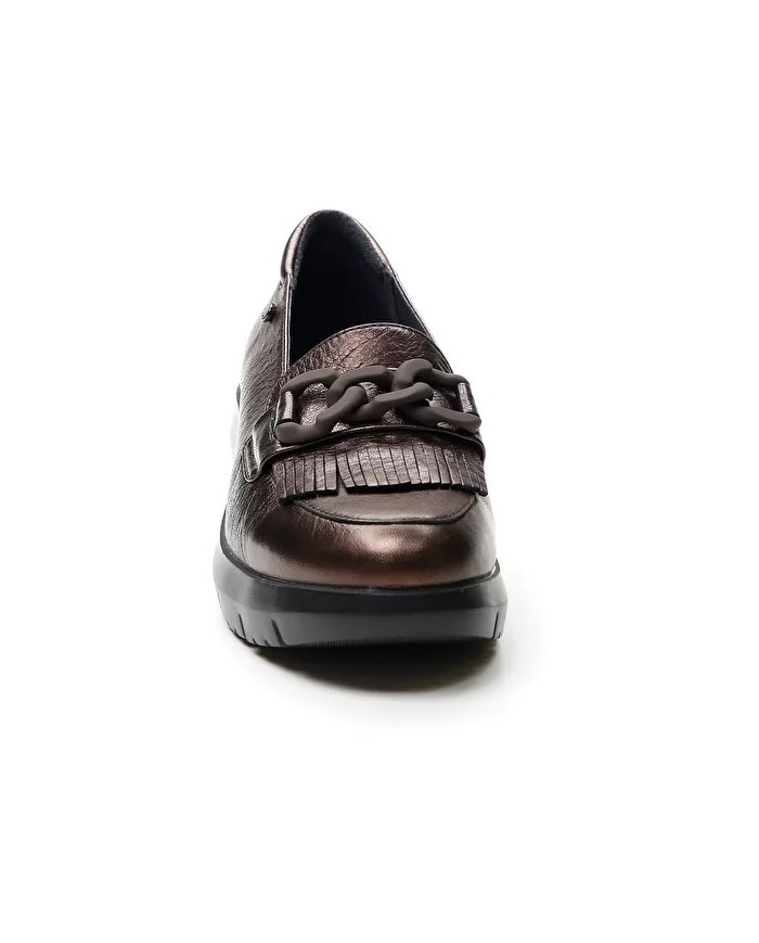 Mocassino da donna in pelle laminata. Emblema di comodità, morbidezza e versatilità. La scarpa è impreziosita dal dettaglio della fibbia metallica. La tecnologia Blusoft® supporta la tua camminata garantendo massimo comfort e ammortizzazione.