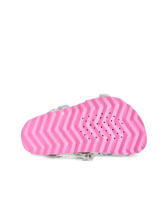 Sandalo baby anatomico e traspirante, pensato per garantire benessere e protezione. Qui declinato in rosa con grafiche multicolor, Chalki è perfetto sia in città che in vacanza. Realizzato in materiale effetto pelle stampata, è regolabile con strap e fibbia e offre una perfetta vestibilità.