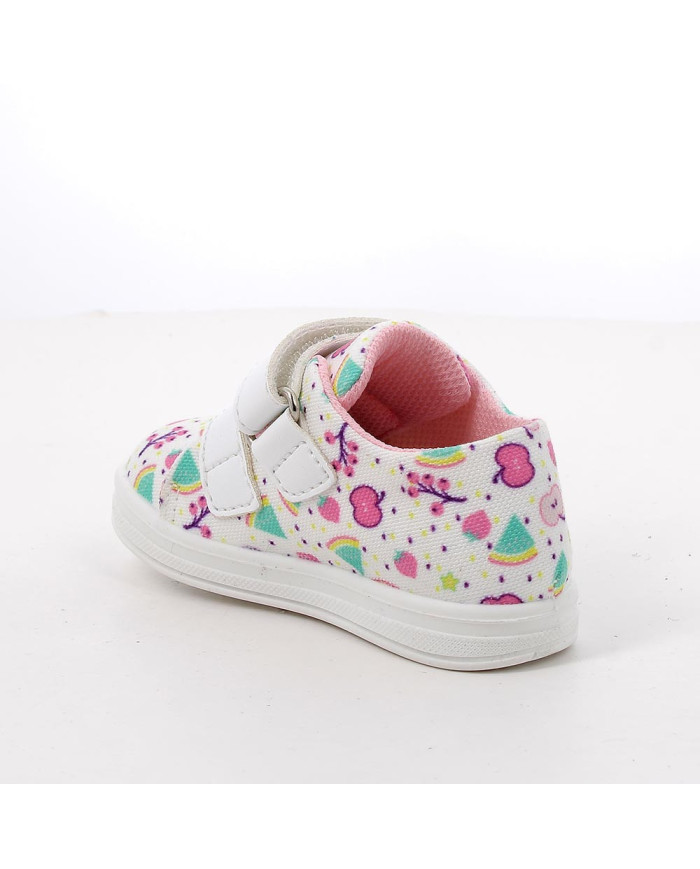 Queste sneakers basse primi passi in tessuto sono scarpine pratiche, leggere e facilissime da calzare anche in autonomia. Hanno gli strappi ed una fodera in morbida mesh. La suola è piatta ed il sottopiede in pelle, è estraibile, per poterlo lasciar asciugare all'aria.