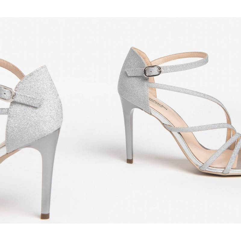 SANDALI CON TACCO NEROGIARDINI DONNA T.MICROGLITTER ARGENTO TPU EGIZIATACCO 10CM E307260DE/700
