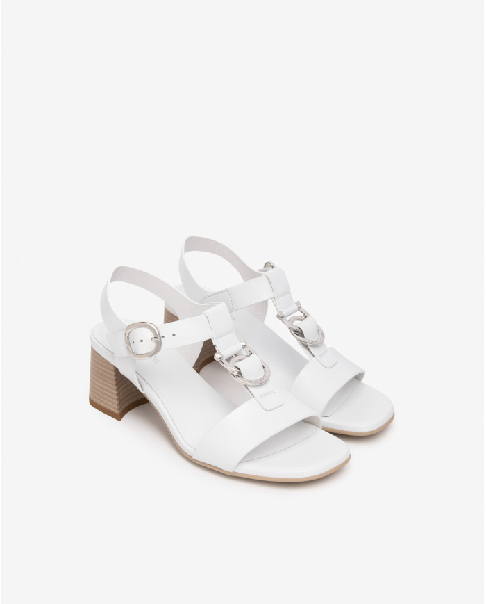 SANDALO CON TACCO NEROGIARDINI DONNA LOIRA BIANCO TPU LOZZA FEN NATURALE TACCO 5,5CM E615870D/707