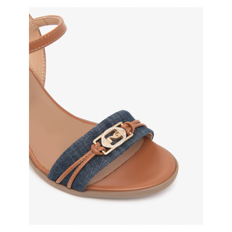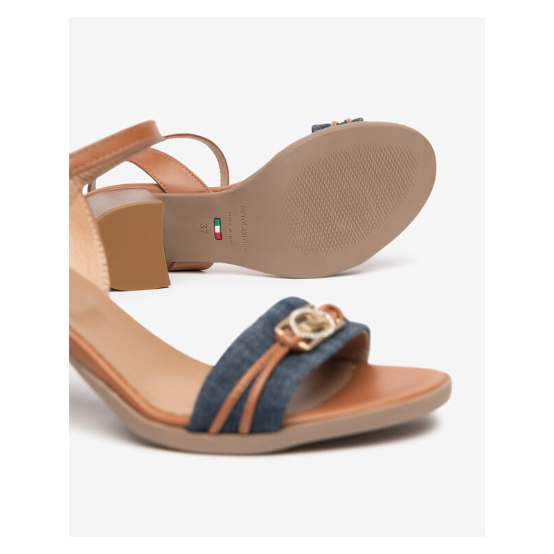 SANDALO CON TACCO NEROGIARDINI DONNA T.TINTO JEANS 9 ARMENIA COGNAC TR AULLA COL.TABACCO TACCO 5,5CM E615880D/214