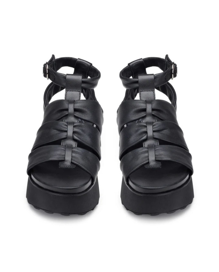 SANDALO CON ZEPPA CULT DONNA JANIS 4479 SANDAL W LEATHER BLACK CLW447900
