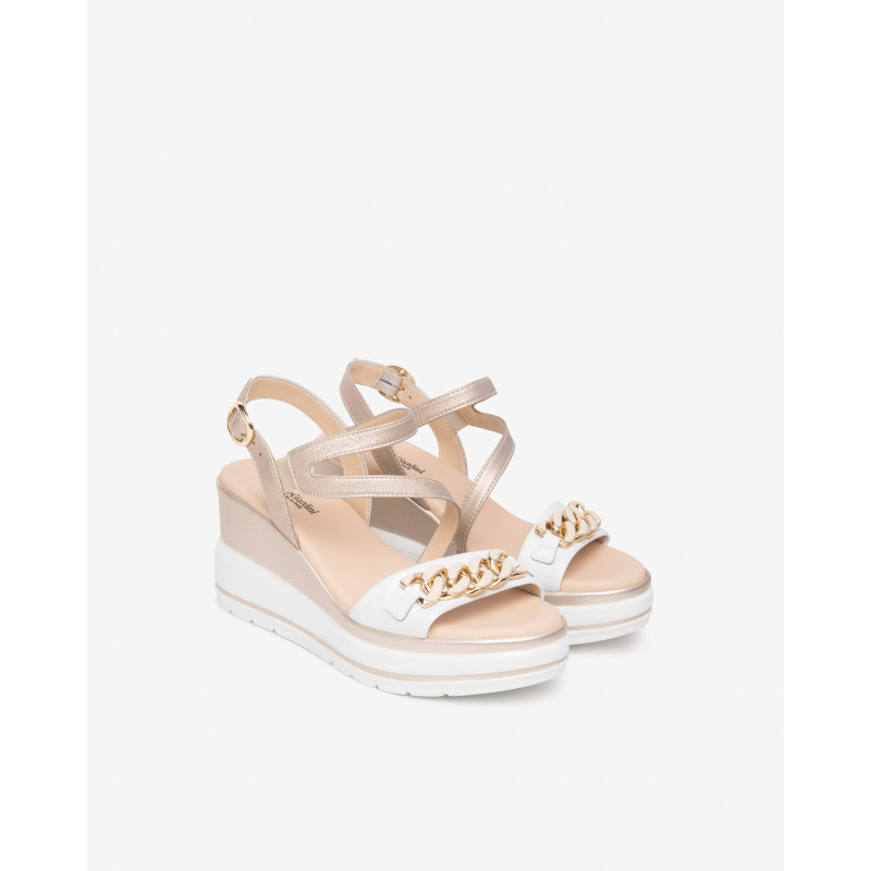 SANDALO CON ZEPPA NEROGIARDINI DONNA LOIRA BIANCO ETOILE SAND SATURN POLI.USSITA E615962D/707