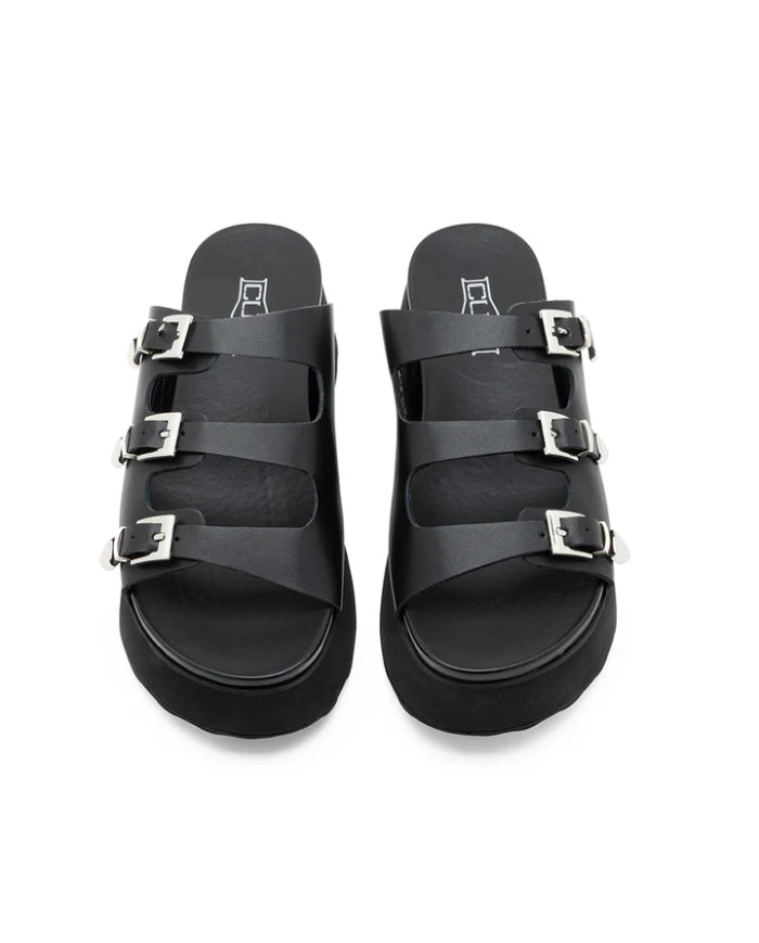 Direttamente dalla nuova collezione SS26, questi sandali platform in pelle Cult elevano l'estetica glam-rock con un triplo cinturino e fibbie metalliche decise. Un mix perfetto di attitudine rebel e design urban, creati per chi vuole uno stile cool e senza compromessi ad ogni passo.