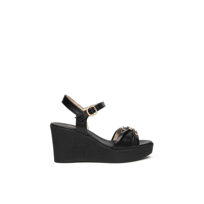 SANDALO CON ZEPPA NEROGIARDINI DONNA NAPPA PANDORA NERO PU.MONOD.GELA E615980D/100