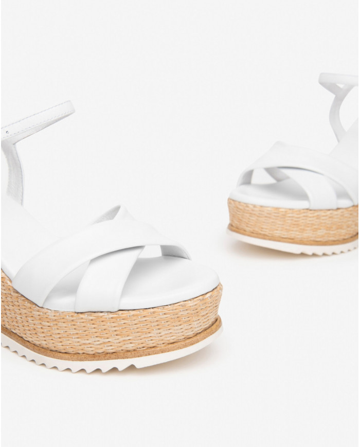 SANDALO CON ZEPPA NEROGIARDINI DONNA PELLE BIANCO WHITE TACCO 8,5CM