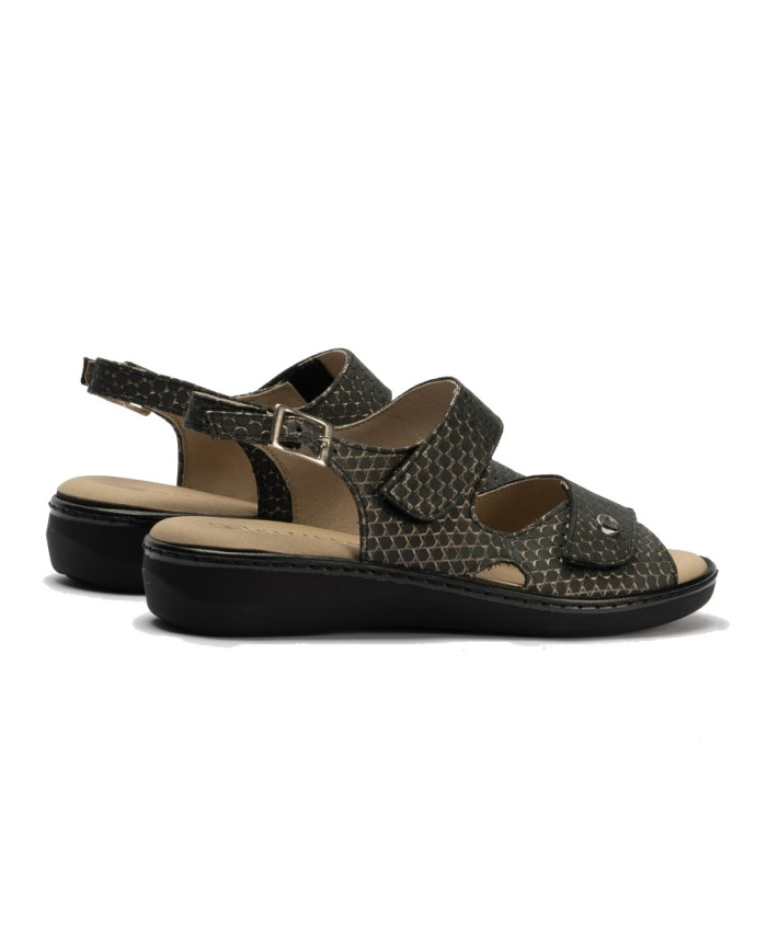 Sandali con velcro da donna. Colore Nero. Trova il sandalo che stai cercando in pelle laminata incisa all'interno della nostra collezione di sandali velcro con doppia finitura. Vestiti comodamente per l'estate e il caldo con un tipo di sandalo molto comodo che ti vestirà perfettamente anche per ogni occasione. Gira la testa con i nuovi sandali con velcro da donna!