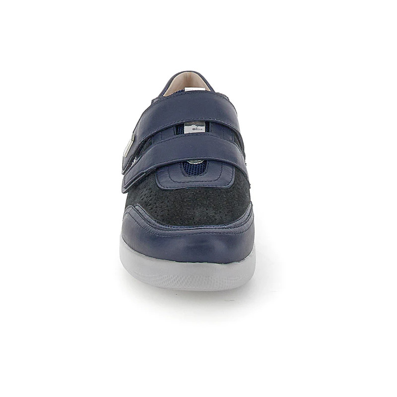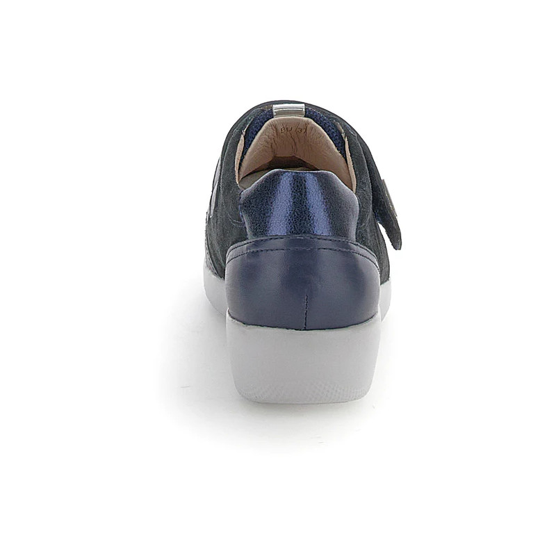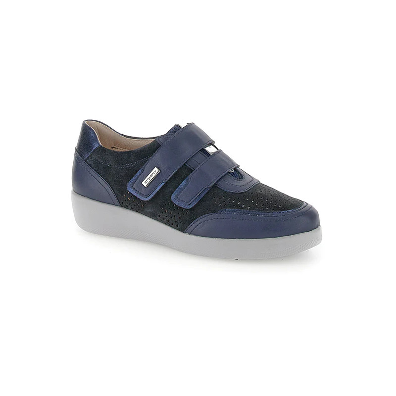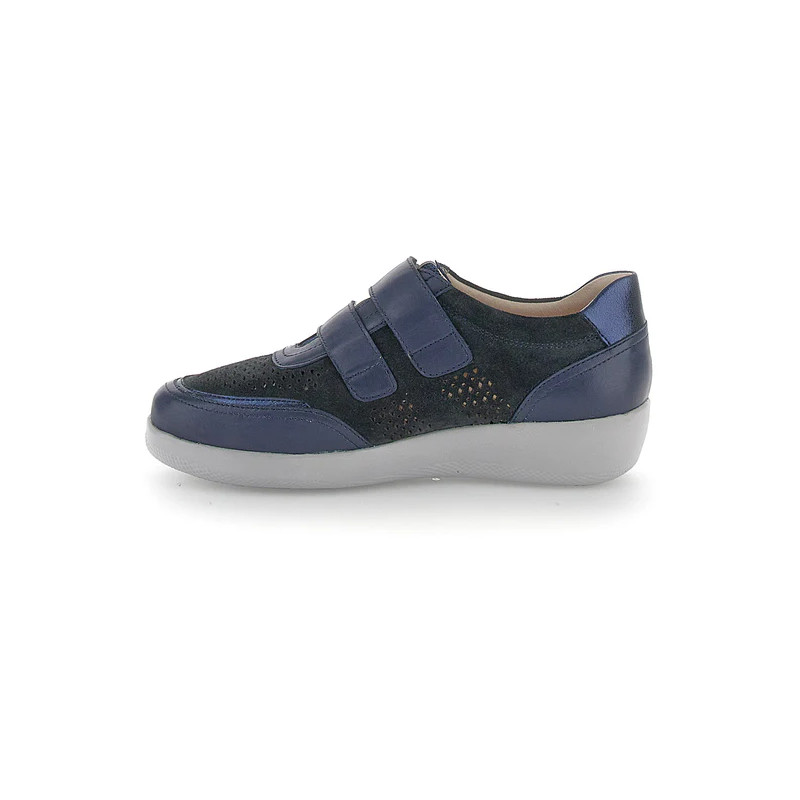 Scarpa con velcro da donna in pelle velour scamosciata e pelle nappa blu con vestibilità extra comfort. La tomaia traforata e i dettagli metallizzati arricchiscono il design classico della linea Paseo: un'icona di comodità e stile per i tuoi look estivi. La chiusura regolabile con velcro facilita la calzata, rendendola più veloce e fluida. La tecnologia Blusoft® supporta la tua camminata garantendo massimo comfort e ammortizzazione. Suola in EVA, altezza tacco (cm): 4.