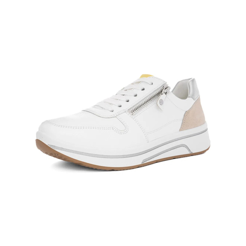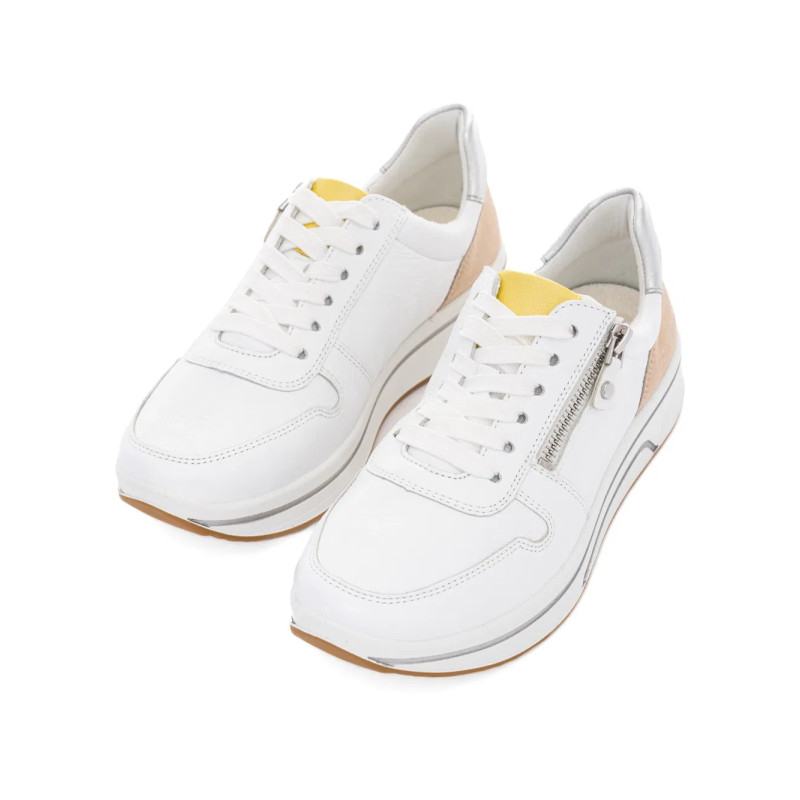 SNEAKERS ARA SHOES DONNA CERVOCALF,GLOSSYCALF,KALBVELOUR,GAUCHOSOFT-MET SAPPORO 3.0 WEISS LIMONCELLO SHEELL SILBER 12-27540-03