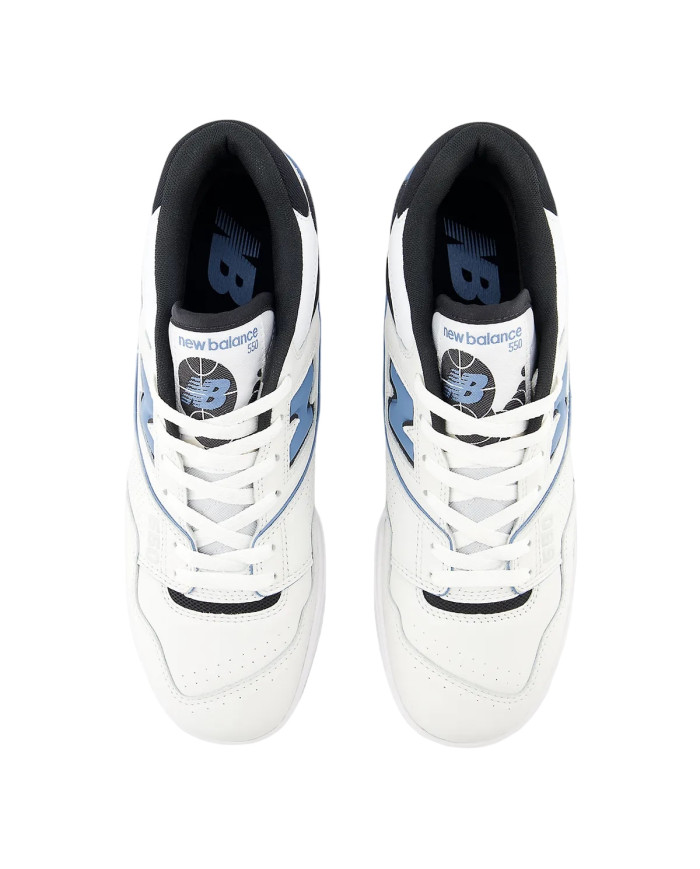 Le sneakers 550 si distinguono per il loro design ispirato agli anni '80, con dettagli che richiamano le scarpe da basket dell'epoca.
