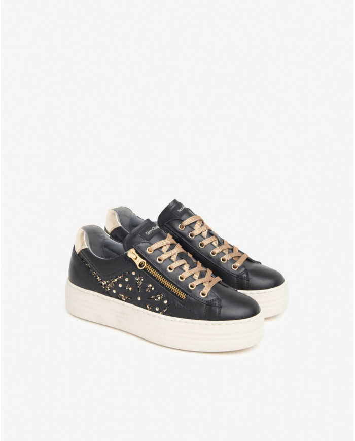 SNEAKERS NEROGIARDINI DONNA GUANTO NERO T.GLITTERNE ETOILE MIELE PU.MONOD.CAPRA I411610D/100