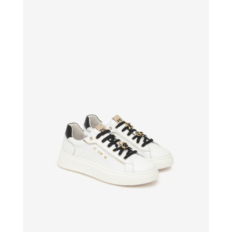 SNEAKERS NEROGIARDINI DONNA CILE BIANCO GUANTO NERO T.BRILL PLATINO TR GONZAGA I514171D/707