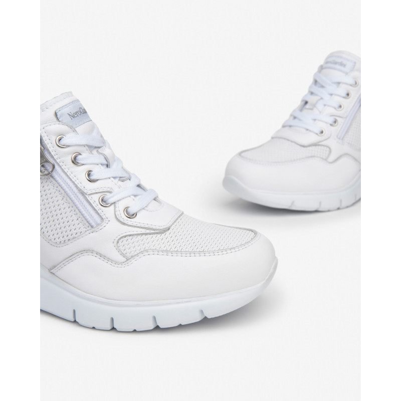 SNEAKERS NEROGIARDINI DONNA PELLE TESSUTO BIANCO E409880D/707