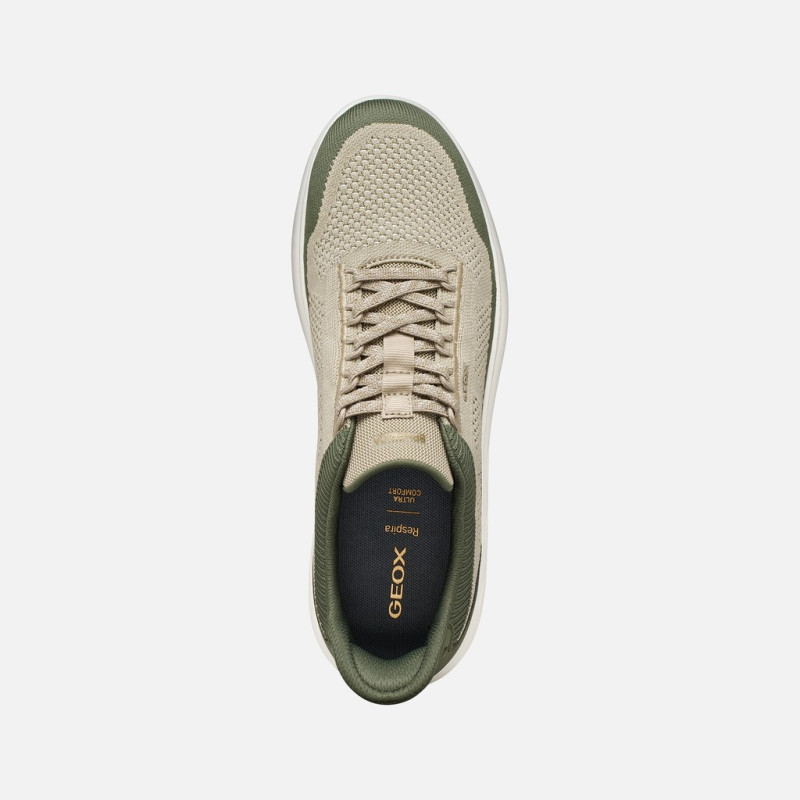 Sneaker uomo super ammortizzata, che si distingue per la calzata semplice e veloce senza l'uso delle mani. Proposta in verde oliva e beige presenta una tomaia che mixa tessuto a maglia e materiale effetto nabuk. Confortevole e traspirante, Spherica™ Plus interpreta con stile il lifestyle urban moderno