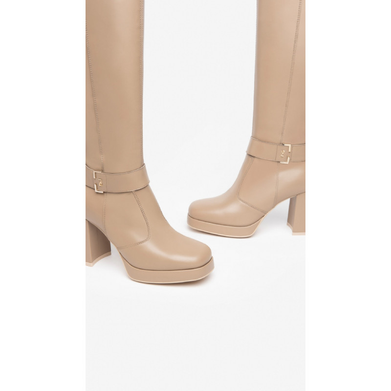 STIVALE CON TACCO NEROGIARDINI DONNA IN PELLE COLORE TORTORA TACCO 9CM I308930D/406