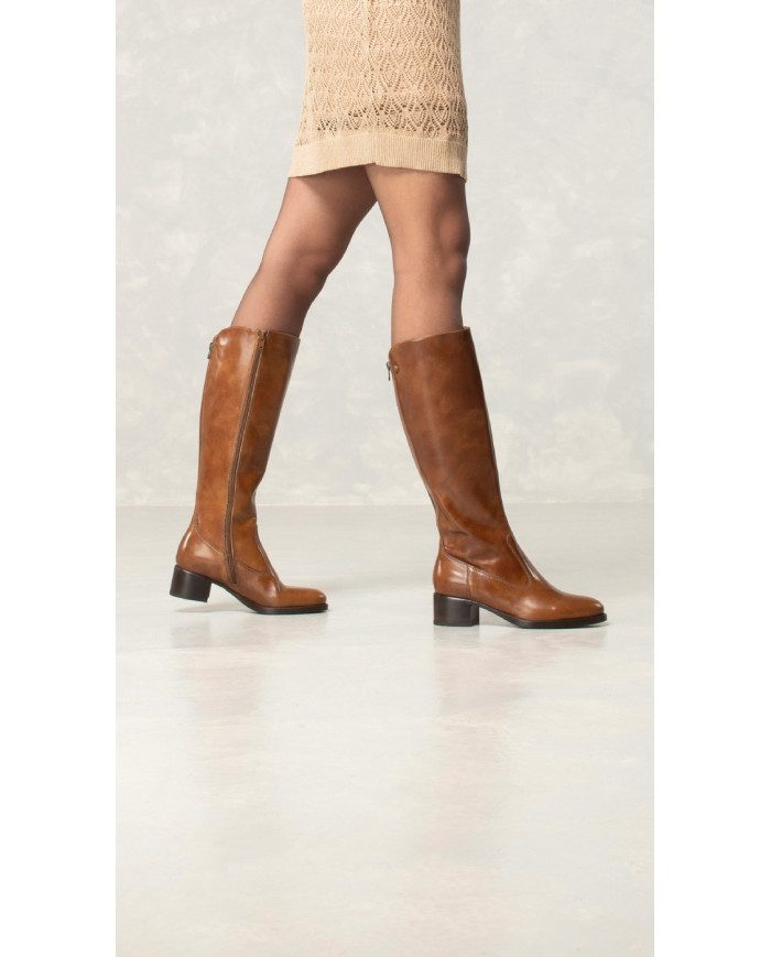 STIVALE CON TACCO NEROGIARDINI DONNA IN PELLE COLORE CUOIO I117561D/400