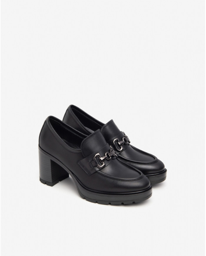 MOCASSINI NEROGIARDINI DONNA GUANTO NERO TR PONZA TACO 8CM I411432D/100