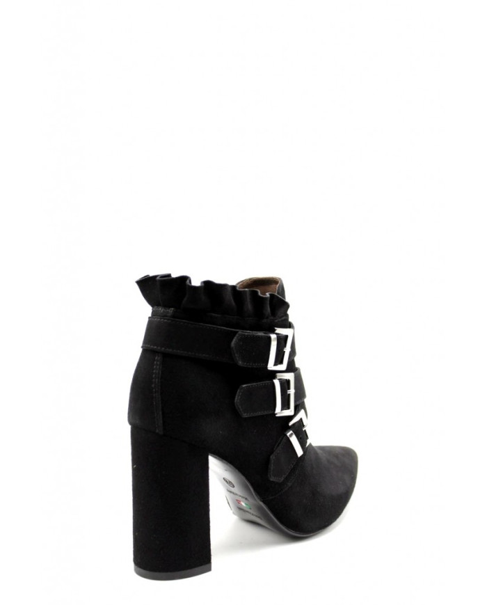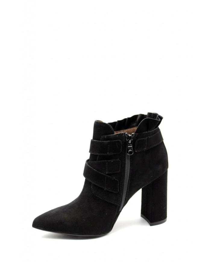 Tronchetto in camoscio con tripla fibbia e cinturini incrociati.